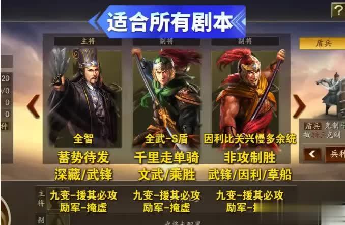 战法自带先攻也不需要给SP诸葛亮额外加速度,张苞加强之后从原来只给关兴抵御,扩大到给群体2-3人施加抵御,抵御有机会额外覆盖到SP诸葛亮,防御更完善,但是对必中几乎没有抵抗能力。比如凌统、孙权、兵书精准,前三回合很容易吃掉北伐。