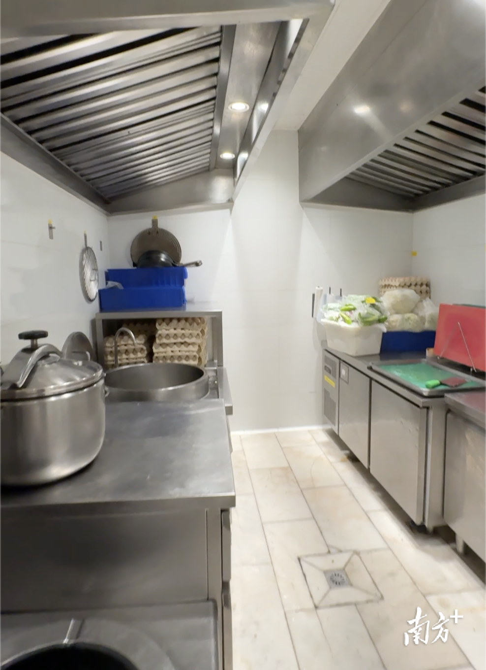 9月12日中午,在西贝莜面村广州正佳店,员工对南方+记者介绍,顾客扫码登记后即可进入后厨。记者更换服装后,跟随厨师长到后厨参观,“我们的原材料和调料都是中央厨房集中供应,但是菜肴都是现做的。”厨师长介绍,肉品会放在半成品冷柜,每天哪些缺货就会补充。