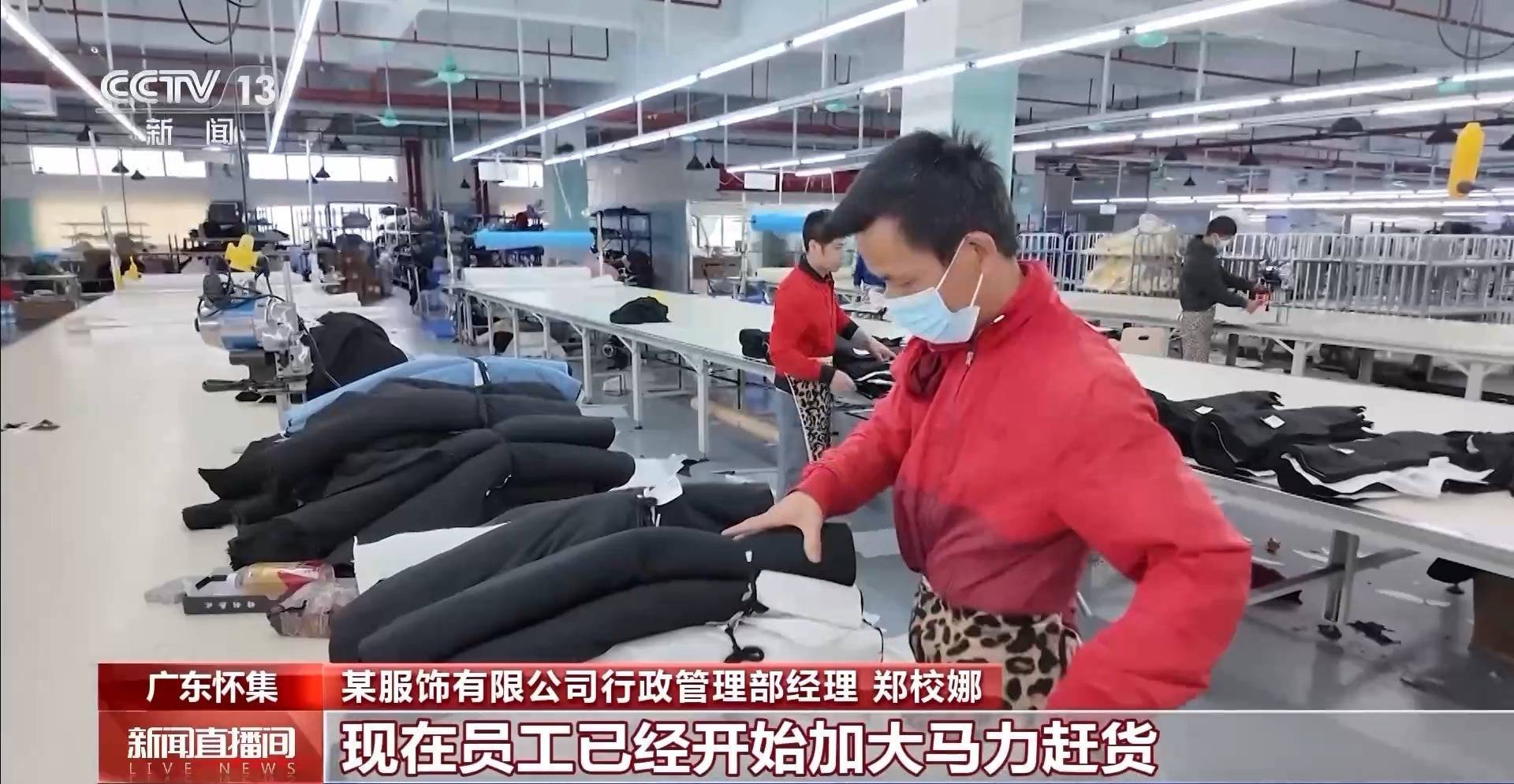 某服饰有限公司行政管理部经理 郑校娜:我们现在产能还是有点不足,现在员工已经开始加大马力赶货。另外,我们老板也会对外开始寻求外援。